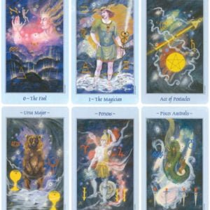 Celestial Tarot is both a handbook of the heavens and an oracular guide to the inner life. The twenty-two cards of the Major Arcana are represented by the twelve zodiacal constellations and ten planets. Each minor suit represents one of the four astrological elements. The accompanying booklet introduces the greater mysteries with a chart of astrological and elemental correspondences. The descriptions of the cards explore the mythological archetypes represented in the major and minor arcana, brought to life by the exquisite artwork of Kay Steventon.