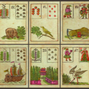 Primal Lenormand is a replica of the original Game of Hope cards published in 1799. The deck was initially conceived as a parlor game to be played with dice. Fifty years later the cards were used for divination by Mlle Lenormand. This Petit Lenormand deck has 36 cards. The booklet includes instructions for both the game and the oracle, in English, French, and German.